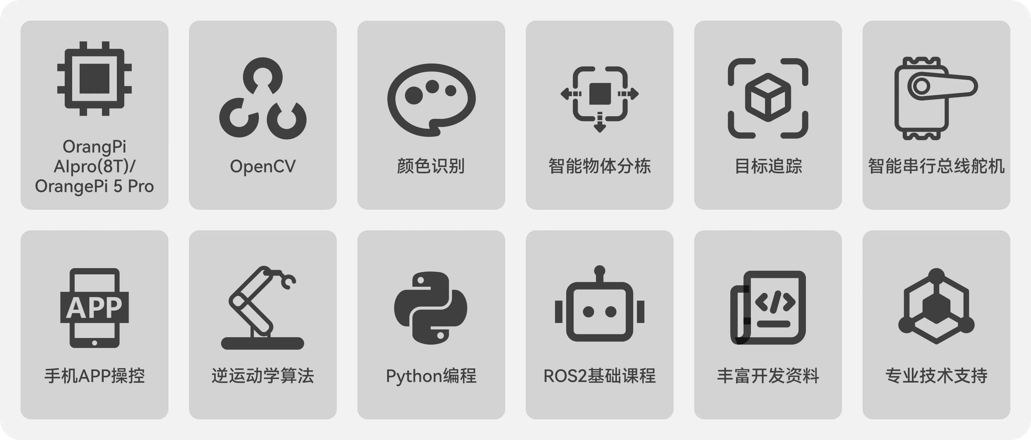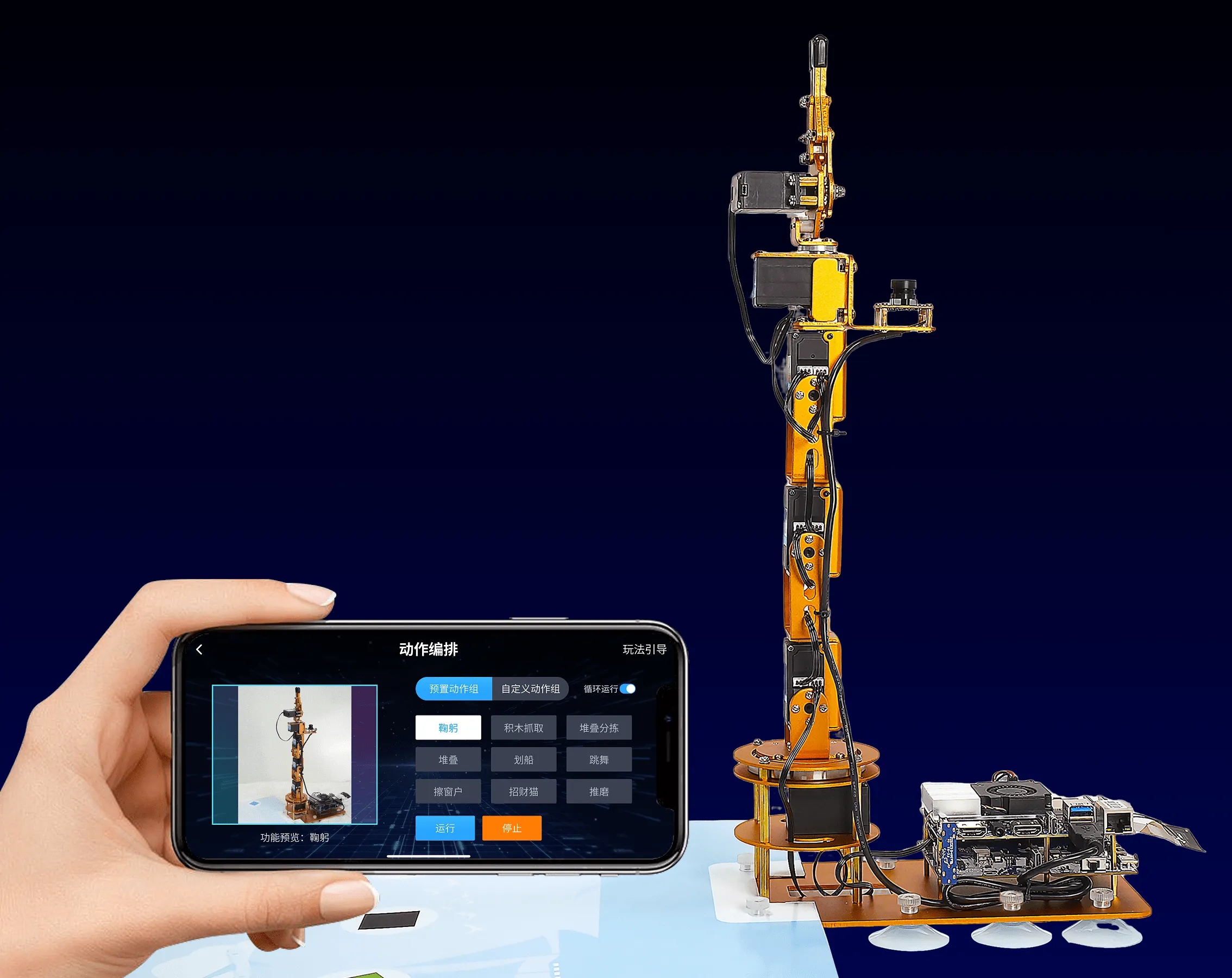 OrangeAI智能视觉机械臂采用Python编程,配备详细的教程资料,带您轻松学习机器人技术和机器视觉,让您可以快速搭建机器视觉编程环境,玩转AI人工智能。