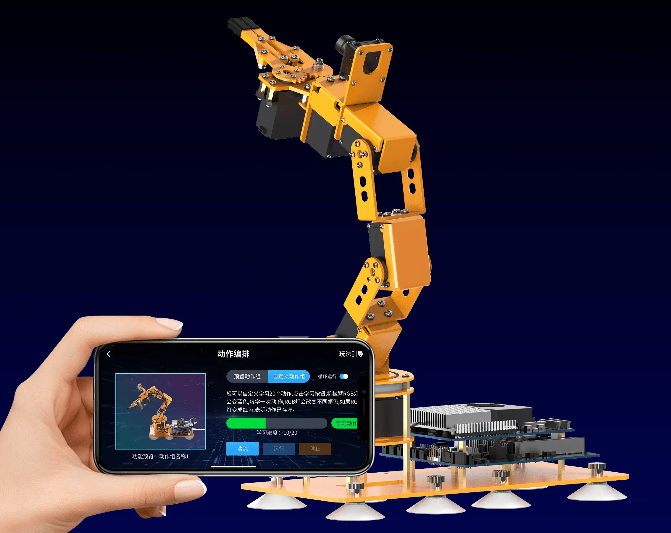 可以让机械臂学习并执行动作组。机械臂会把当前的姿态记录为一个动作,最多可记录20个动作。